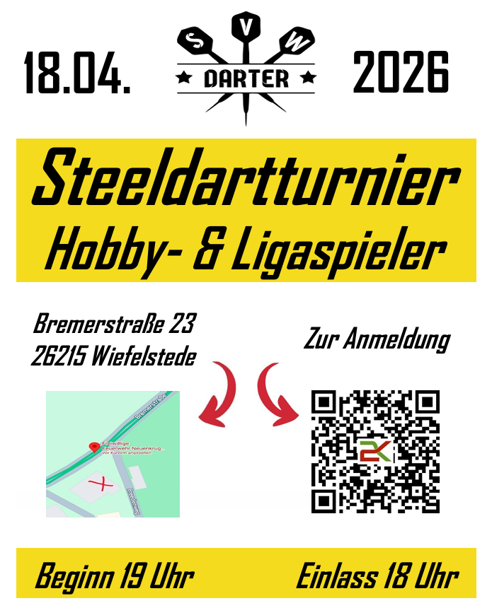 Am 18.04.2026 findet unser fabelhaftes Steeldart-Turnier statt. Sei dabei!